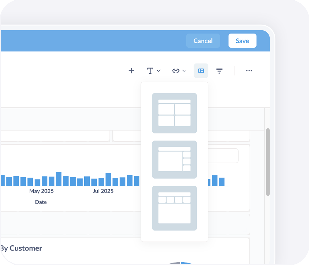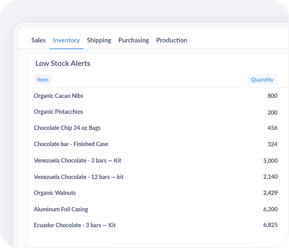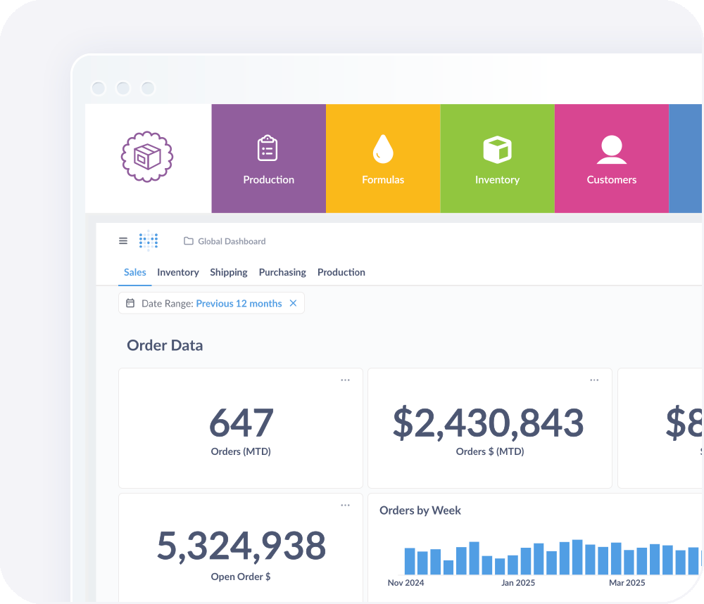 Build the dashboards you need to track inventory, sales, production, shipping, and more. Drag, drop, and filter your data to get clear insights fast.