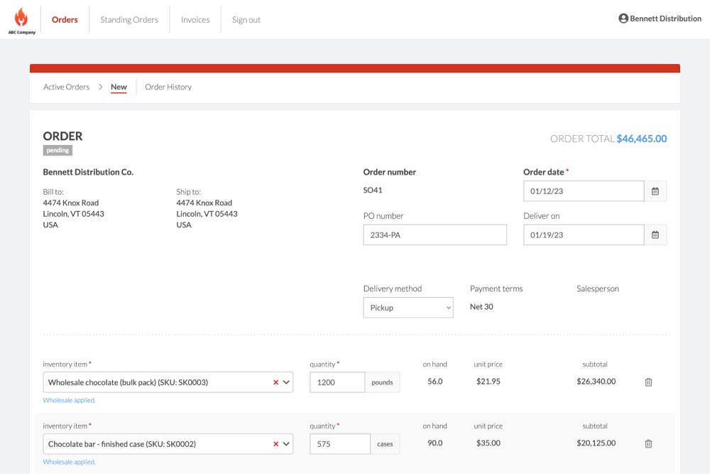 Our customizable B2B ordering portal lets you give customers access to their own orders, standing orders and invoice history. You control what products they can order and what prices they pay. Wherefour can even apply promotional pricing based on the time of year or purchase volumes.
