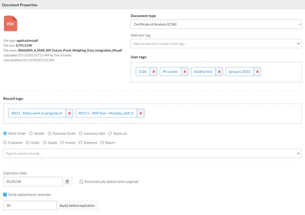 Keep inventory, production and compliance data in one place, accessible 24/7 from anywhere in the world. Upload, store and “tag” an unlimited number of compliance documents, such as COAs, lab test results, photos, scanned notes, PDF files, spreadsheets and more. If you’re using a mobile device, use the camera to snap an instant record and store it with the rest of your data.