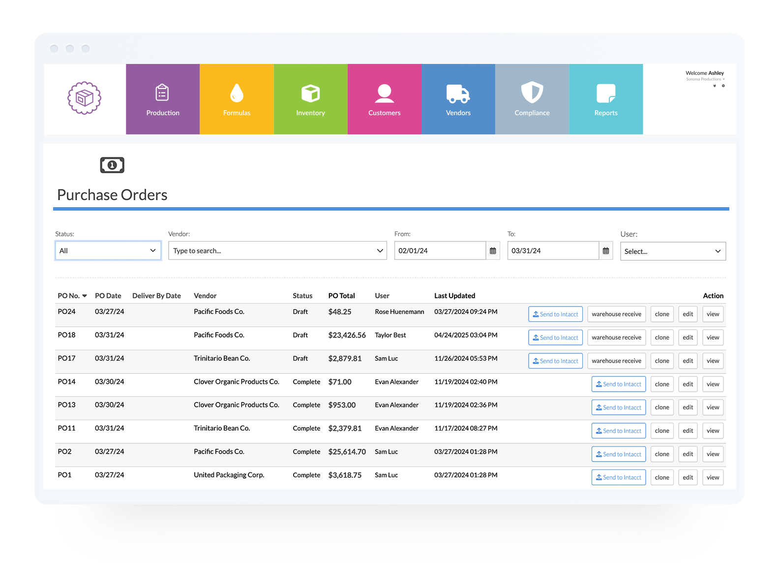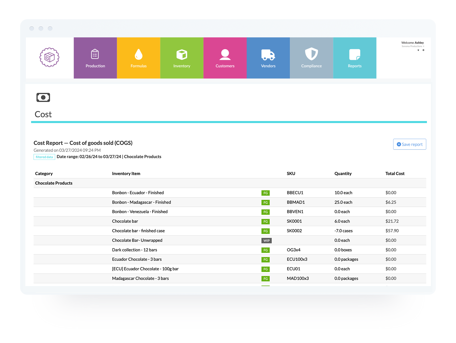 Wherefour’s work order-driven production module makes it easy to customize your workflow to what meets your needs. From consistent, daily production to production needs that are driven by your daily customer orders, we’ve got you covered. COGS tracking means that your true production costs are just a click away.